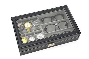 Watch and Sunglasses Jewelry box, 6 Watch Box Jewelry Case and 3 Slots Sunglasses Organizer, PU Leather Eyeglass case Watch and Sunglasses Box for Men Women Wrist Watch Storage Box Display Case Organizer Jewellery Organizer Storage Box Sunglasses Storage Box- 6+3 Grids Watch Box