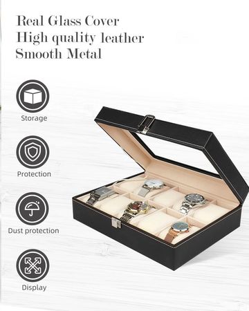 PU Leather 10 Slots Wrist Watch Display Box Storage Holder Organizer Watch Case Jewelry Display Watch Box Leather 10 Slots Watch Storage Box Organizer | Watch Box Organizer | Watch Box | Watch Case Box For Women | Watch Cases Box For Men - Black