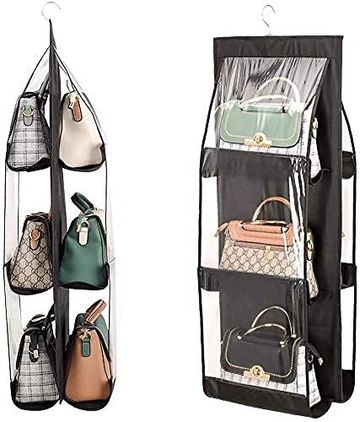6 Pocket Foldable Hanging Purse Handbag Organizer For Storage Ladies Women Large Clear Hand Bag Storage Organizer, Black Hanging Handbag Purse Organizer for Ladies/Women/Girls Hand Bags Storage Holder Wardrobe Closet for Purse and Clutch with 6 Pockets